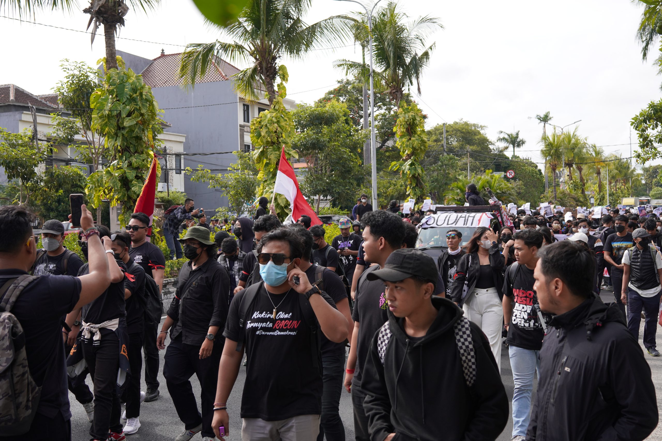 Gabungan organisasi se-Bali membentuk aliansi Bali Menggugat tengah melangsungkan kegiatan demonstrasi di depan Universitas Udayana di Jalan PB. Sudirman, Denpasar Barat, Kota Denpasar, Bali pada Jumat, (23/08). Di bawah terik matahari yang menyengat, para demonstran memenuhi jalan dan meneriakkan tuntutan mereka dengan semangat yang tak surut meski cuaca panas semakin terasa.