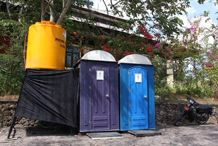 Toilet yang disediakan khusus pada saat acara PKKMB ini hanya berjumlah dua buah. Satu untuk putra dan satu untuk putri. “Dua toilet ini saja kita sudah berusaha dik. Soalnya harganya mahal, Rp.1000.000,- per toilet untuk satu hari,” ujar Putu Rosa sembari tertawa.