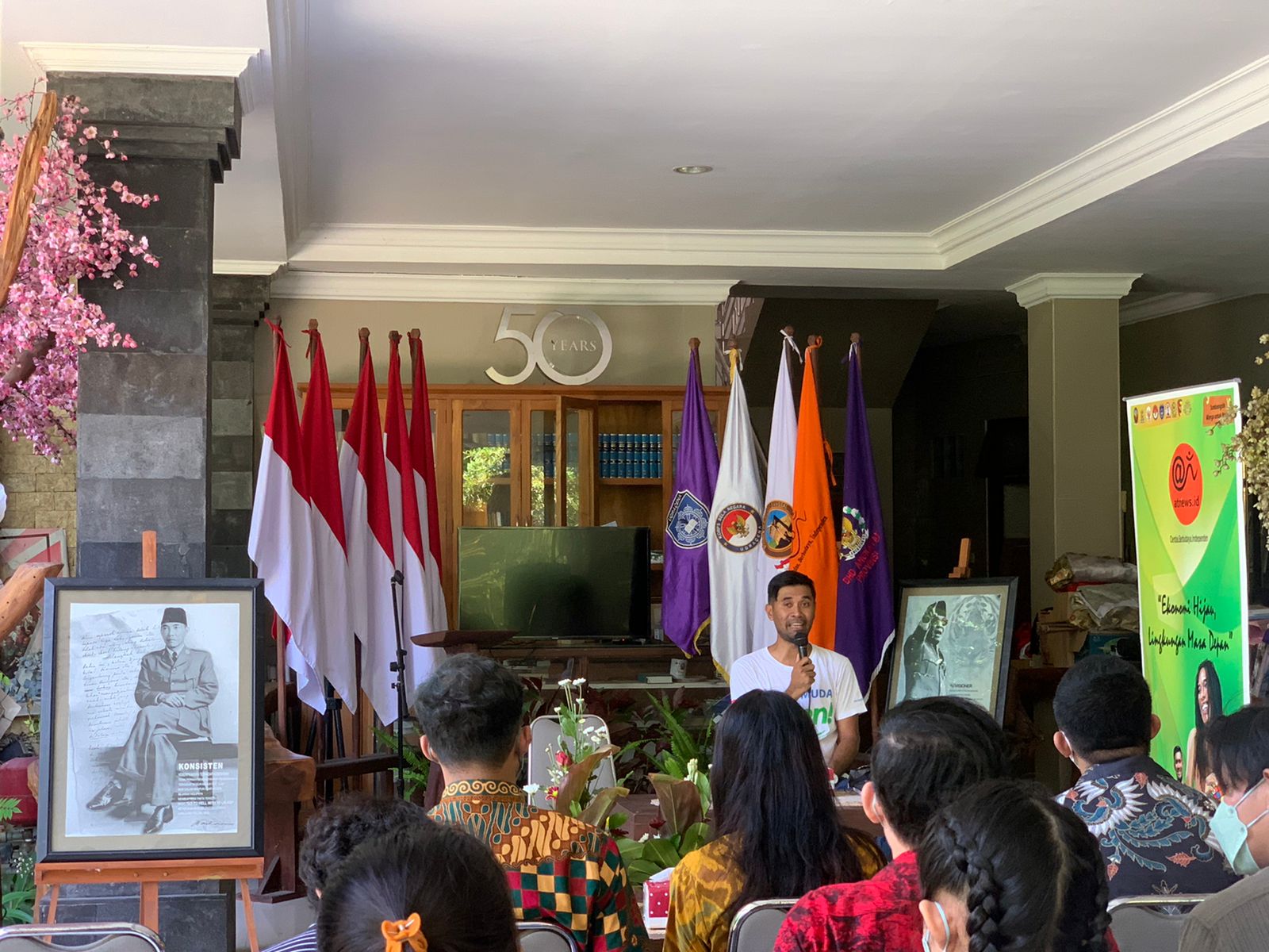 AA Gede Agung Wedhatama selaku Ketua Petani Muda Keren (PMK) yang juga merupakan Owner PT Bali Organik Subak (BOS), memberikan dialog terkait “Ekonomi Hijau, Lingkungan Masa Depan”. Beliau menerangkan mengenai industri pertanian yang sepatutnya dikelola dengan bai dan bukan hanya dimanfaatkan tanpa merawatnya. “Di masa pandemi, pertanian justru merupakan sektor yang paling tangguh sebab kebanyakan orang mulai bertani bahan pangan sederhana ketika pandemi mulai merebak di tahun 2020,” ujarnya.