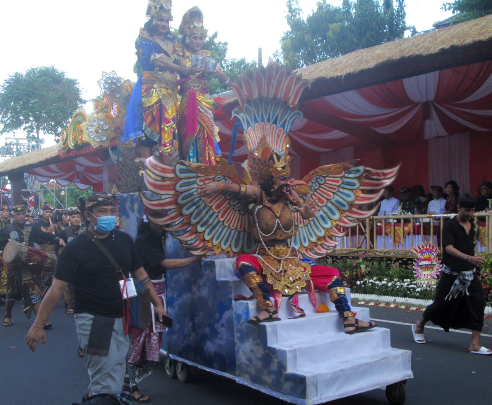 Lebih lanjut, ia menerangkan bahwa dalam penampilan tersebut melibatkan sekitar 150 mahasiswa. Adapun rinciannya: untuk penabuh sekitar 50-55 orang; penari garuda 8 orang; tedung 7 orang; gebogan 7 orang; rantasan 4 orang; penirtaan 2 orang; Tari Saraswati 5 orang, Tari Pendet 4 orang; Tari Legong 5 orang; tarian pakaian tradisional nusantara 16 pasang atau 32 orang; dan 2 orang pembawa papan nama.