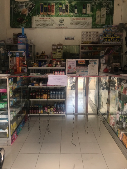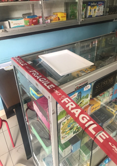 Selain itu, untuk meminimalisasi terjadinya kontak langsung dengan pembeli, pihak apotek juga menerapkan sistem antri dan memberikan pembatas dengan tali dan lakban antara pegawai dan pembeli agar tidak terjadi kontak langsung. “Disini juga disediain nampan untuk taruh uang dan obat,” tambahnya.