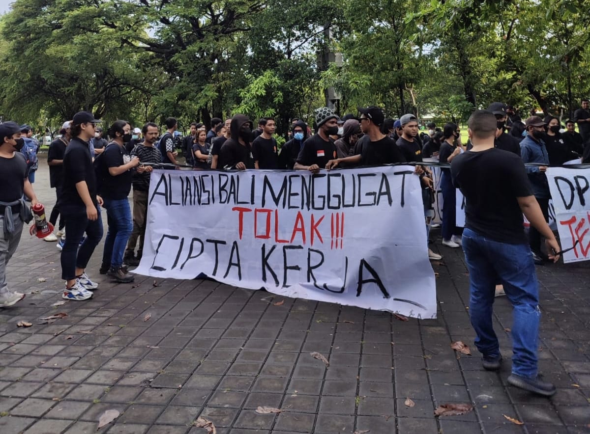 Mengatasnamakan Aliansi Bali Menggugat, para peserta aksi yang terdiri dari lapisan mahasiswa dan masyarakat melakukan aksi unjukrasa  di depan Gedung DPRD Provinsi Bali yang bertempat di Renon pada hari Kamis (15/4). Aksi tersebut ber-intisarikan penolakan terhadap pengesahan Undang-Undang Cipta Kerja yang dinilai inkonstitusional serta merugikan pekerja buruh dan lingkungan. Cuaca yang sempat tak bersahabat hari itu, tak mengurungkan niat peserta aksi untuk menyerukan keresahannya. Sekitar pukul 14.00 WITA, massa aksi yang berjumlah sekitar 50 orang mulai bergerak menuju Gedung DPRD Provinsi Bali.